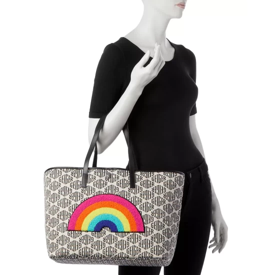 - Tufted rainbow appliqué at front